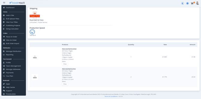Once you have placed an order, you'll be able to see the order on your Bookvault dashboard. If you view the order, at the bottom of the page, you'll be able to see the order lines you submitted and an outline of the specifications received. At present, there isn't a way to view processed files, but this is an imminent update. If you have any doubts, you can reach out to the support team who will be able to confirm.