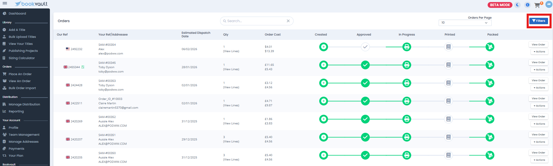 So, you’ve placed an order and want to check up progress on it. You can do that all through the Bookvault portal.