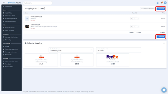 The final part is for shipping, depending on the weight and location of the consignment, you may be presented with several different options, click on the desired option to turn the outline green and then you should be displayed with a total at the bottom of the page. You can also choose to round up your order donating the difference to support the current Bookvault Impact charity.